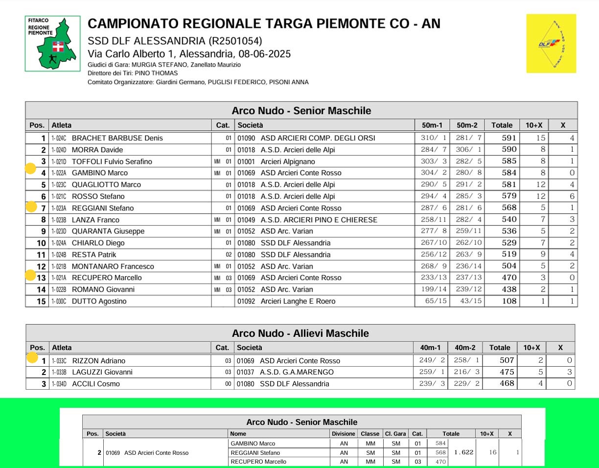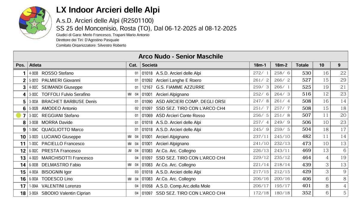 Reggiani 1° posto Arco Nudo Senior Maschile