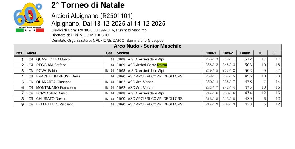 Rosta 6-8 dicembre LX Indoor Arcieri delle Alpi